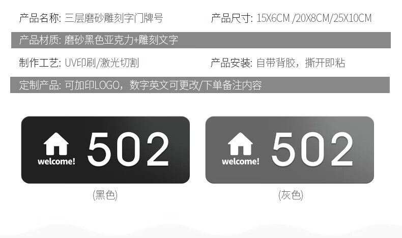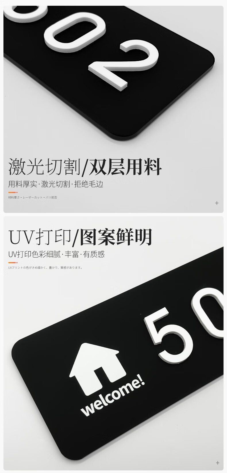 海斯迪克 亚克力门牌号码牌 gnxy-444 黑色 20*8cm 1个