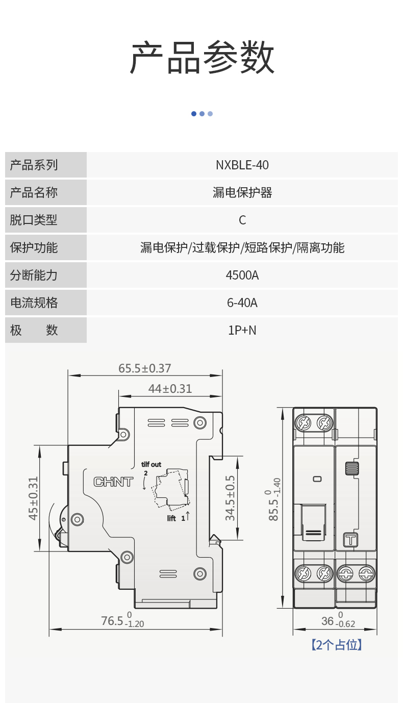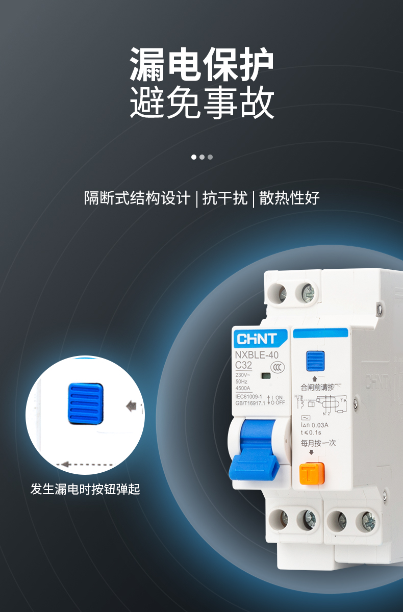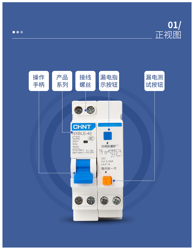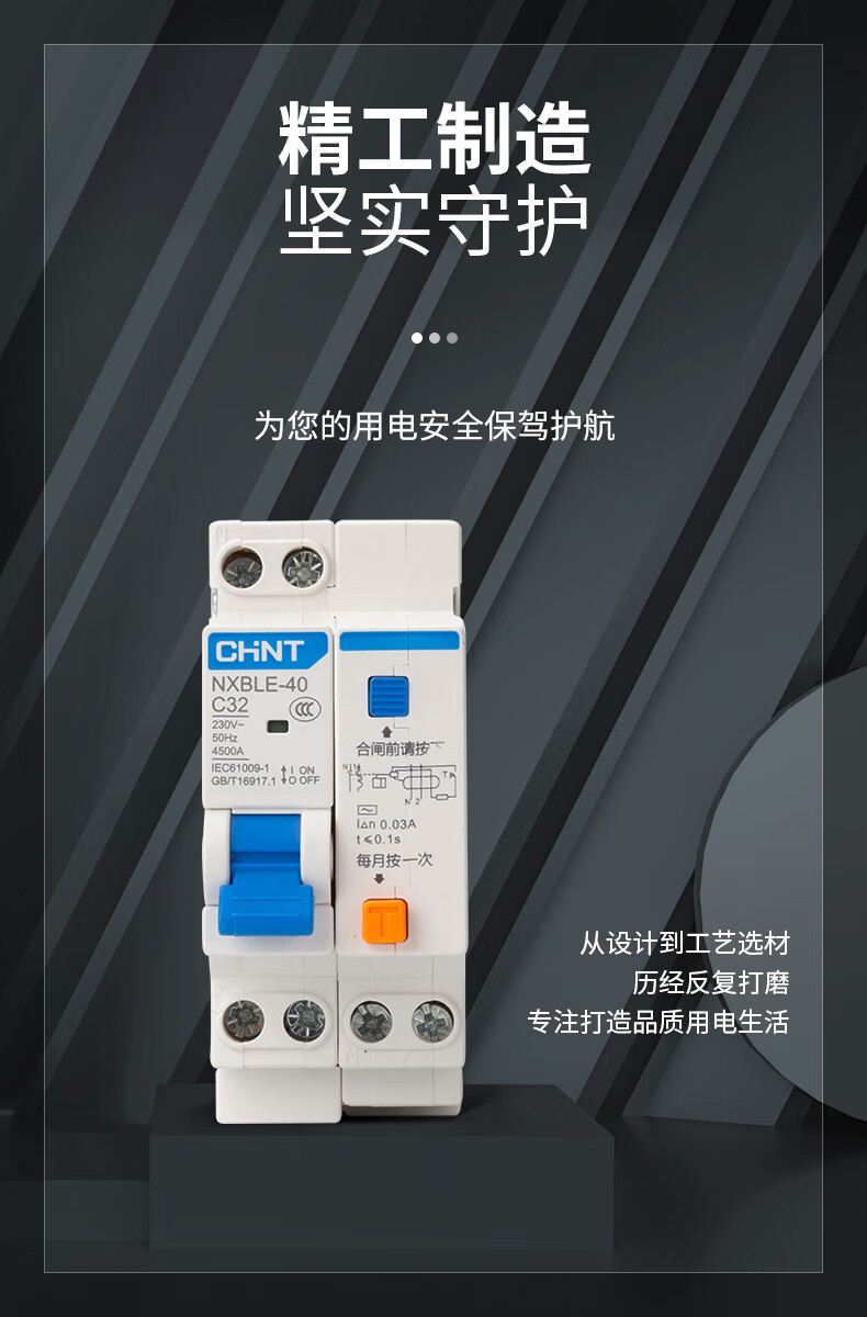 正泰 NXBLE-40系列剩余电流动作断路器 NXBLE-40 1P+N C25 0.03A 4.5kA C型 25A 1个