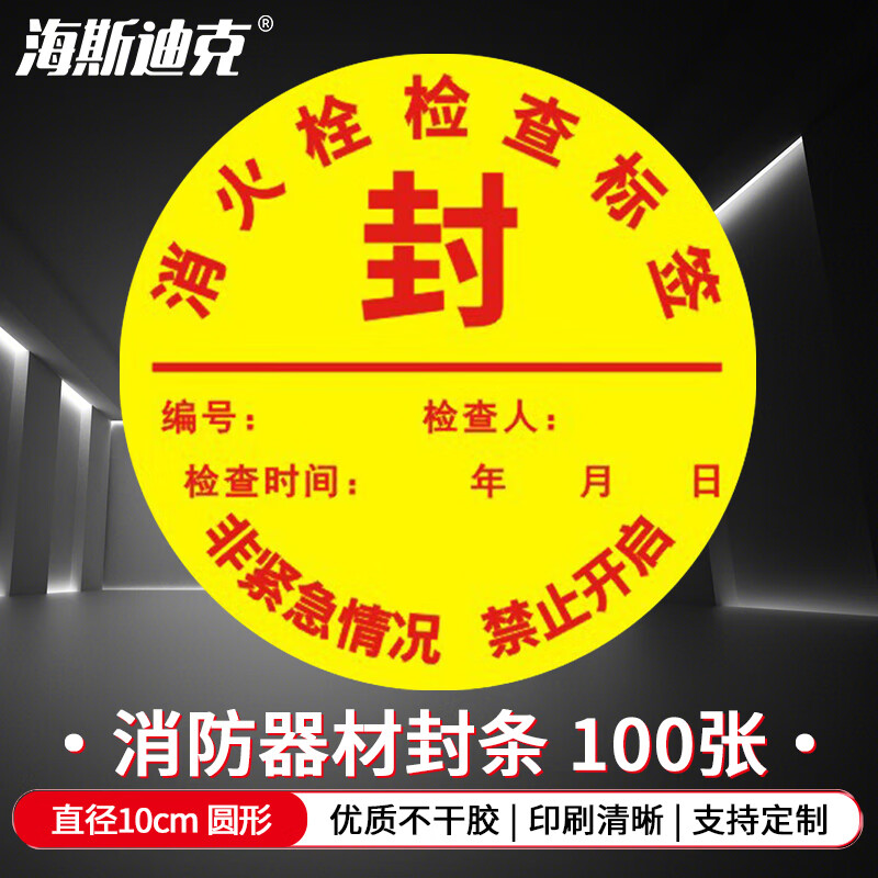 海斯迪克 消防门贴封条 gny-562 直径10cm 不干胶 I款 100张 1包