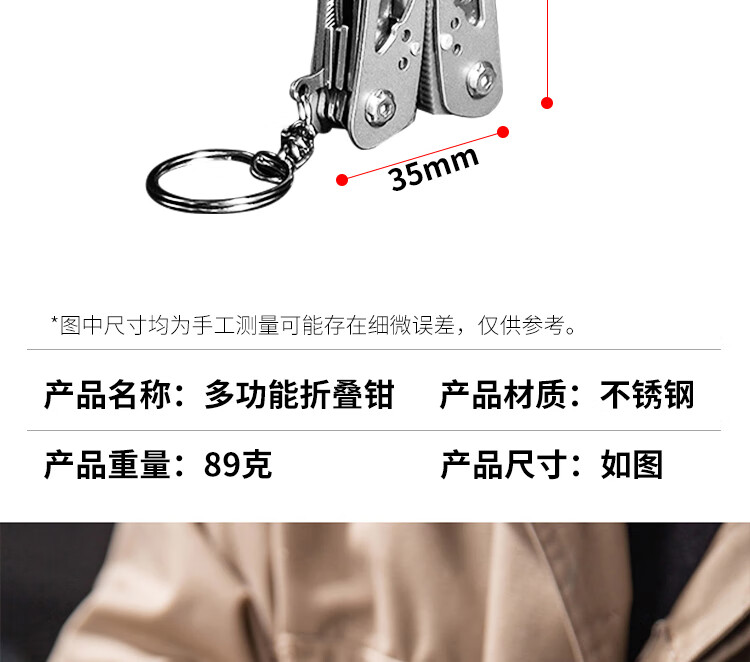 海斯迪克 不锈钢折叠钳 gnjz-5039 迷你钳子 多功能刀钳 1个