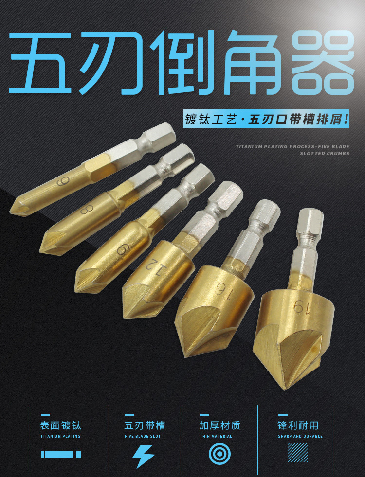 首页>金属加工>磨具刃具>刃具>钻头>海斯迪克 五刃倒角器