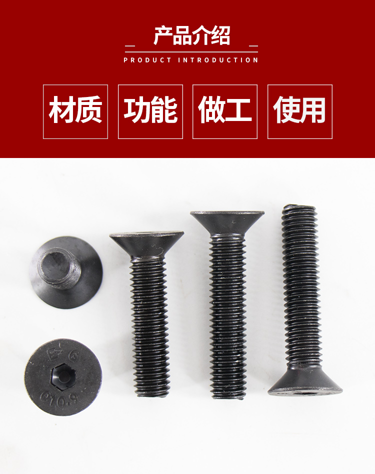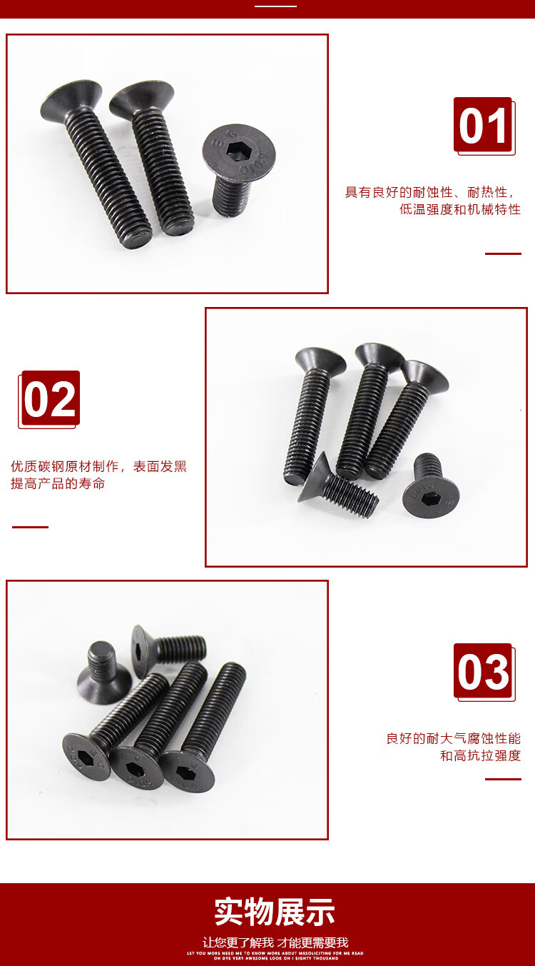 海斯迪克 高强度沉头平头内六角螺丝钉螺栓 gnjz-362 10.9级 DIN7991 M8×45 50个 1包