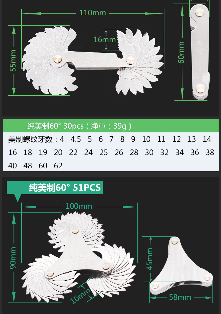 海斯迪克 螺纹规 gnjz-444 51pcs纯美制 1个