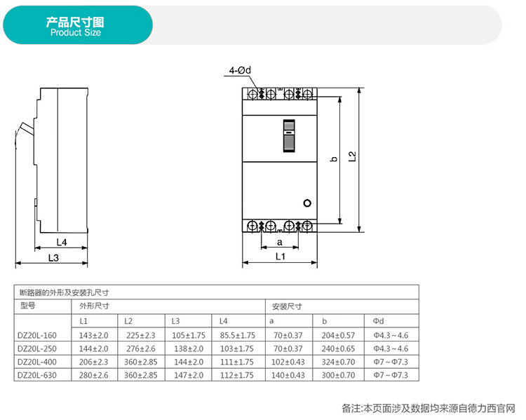 德力西电气 DZ20L系列塑壳漏电保护断路器 DZ20L2502504KT 非透明型 250A 250A 3P+N 1个