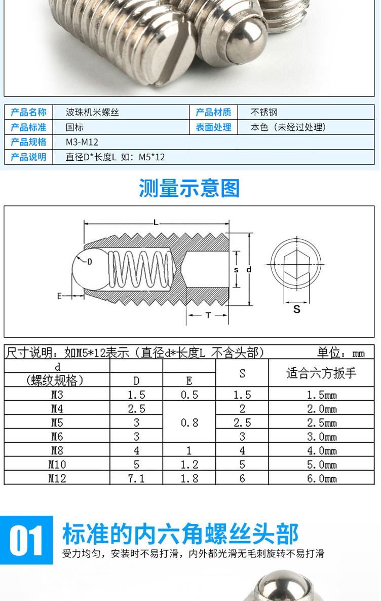海斯迪克 波珠定位珠 gnzy-10 304不锈钢 M5*8 1个
