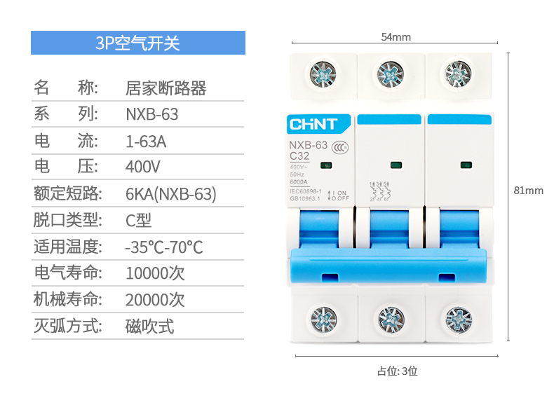 正泰 小型断路器 NXB-63 4P C型 6A 1个