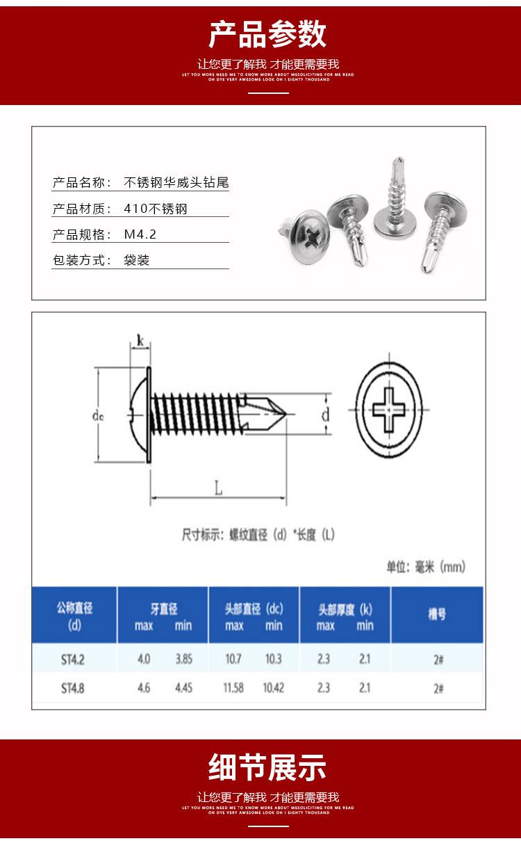 • 商品名称:海斯迪克 华威头十字槽钻尾螺钉