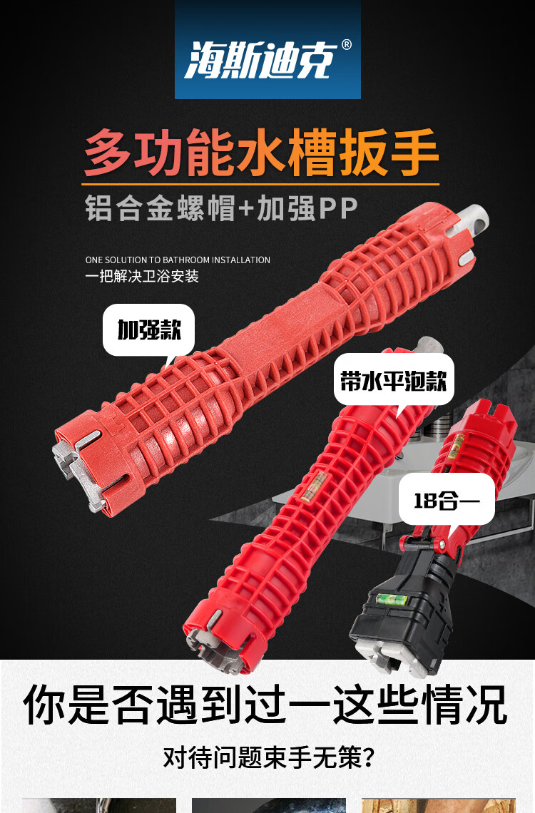 海斯迪克 卫浴扳手 gnjz-7048 铝合金+PP 18合一 1个