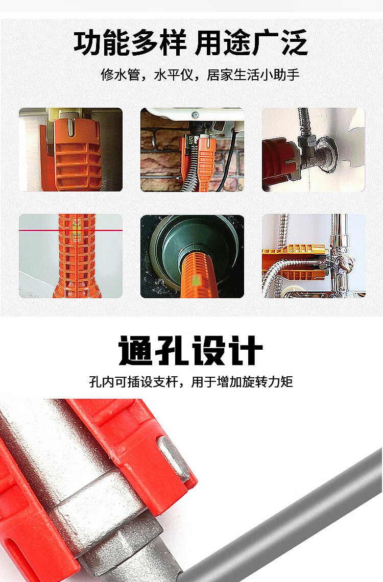 海斯迪克 卫浴扳手 gnjz-7048 铝合金+PP 双头红色加强(无水平泡) 1个