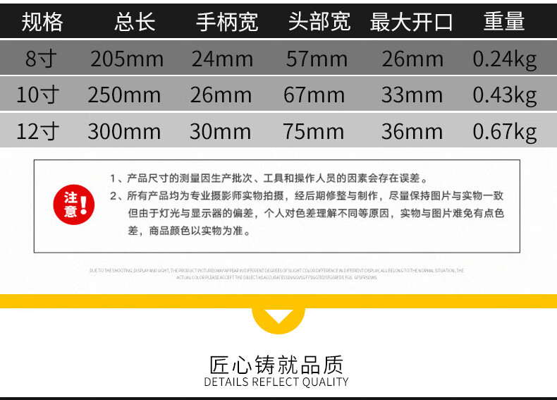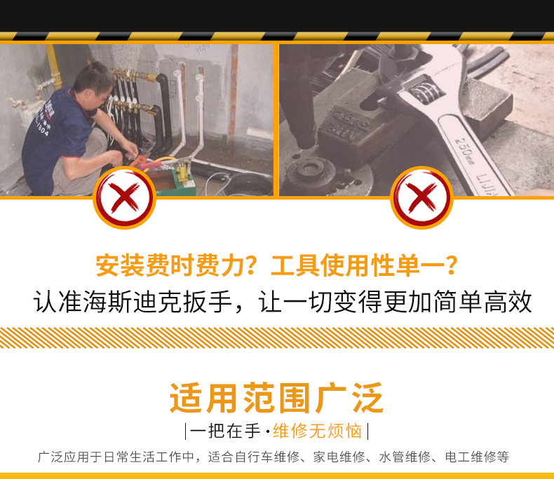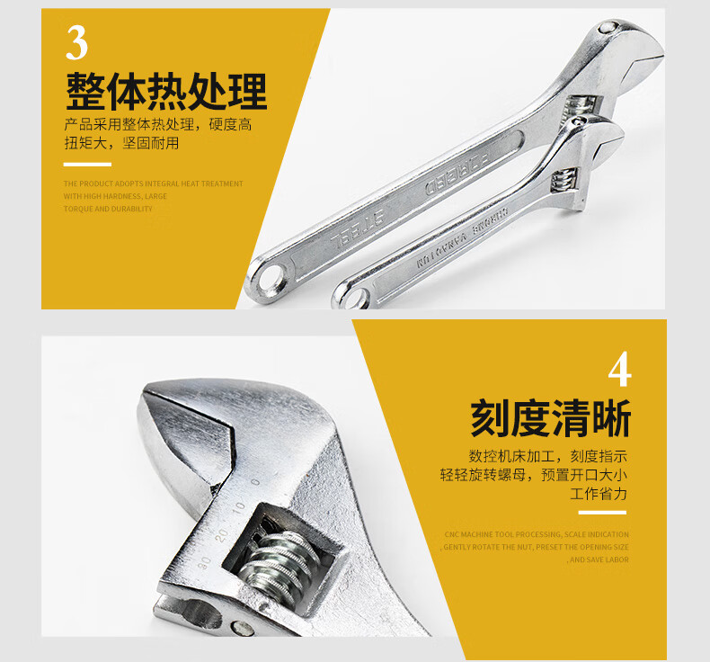 海斯迪克 活动扳手 gnjz-664 碳钢 银色 8/10/12寸 3件 1套
