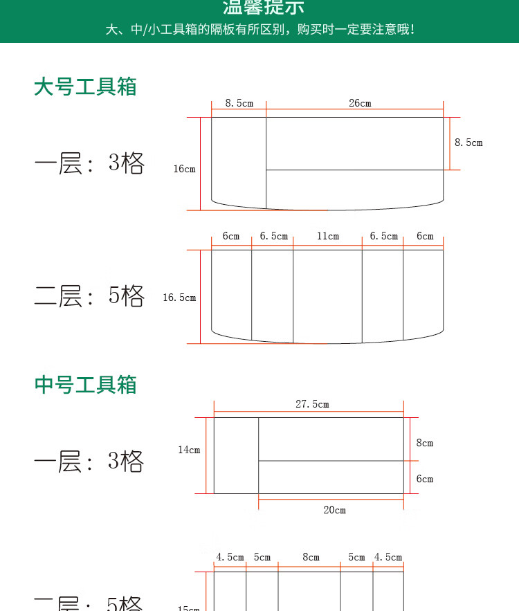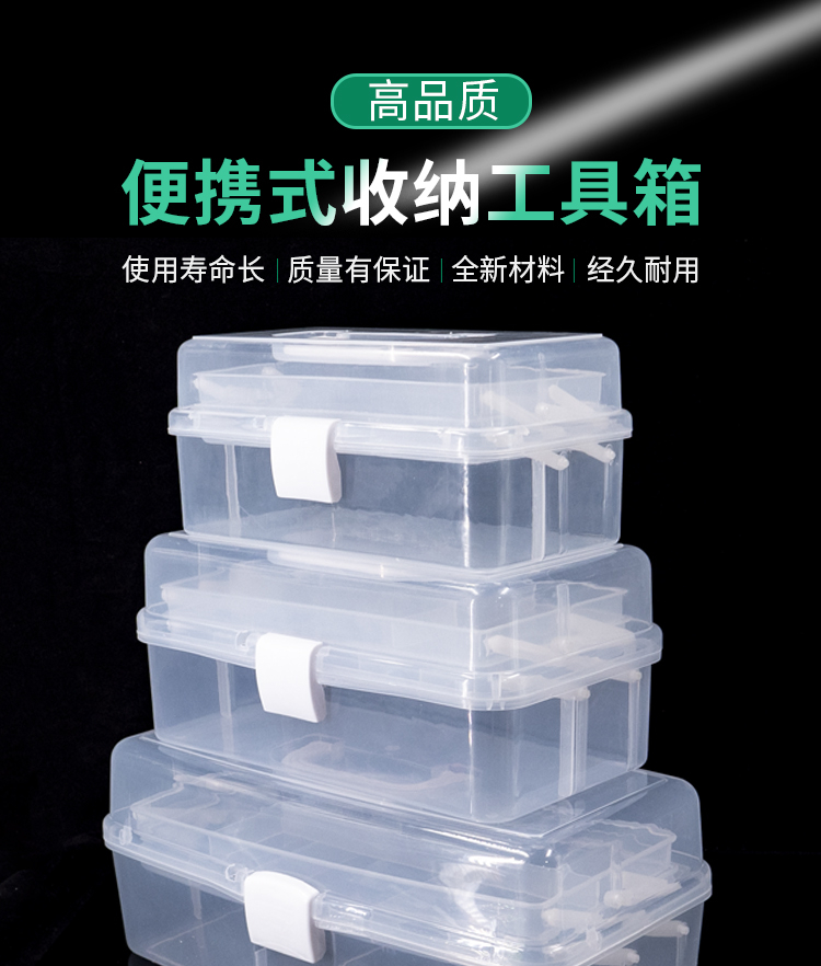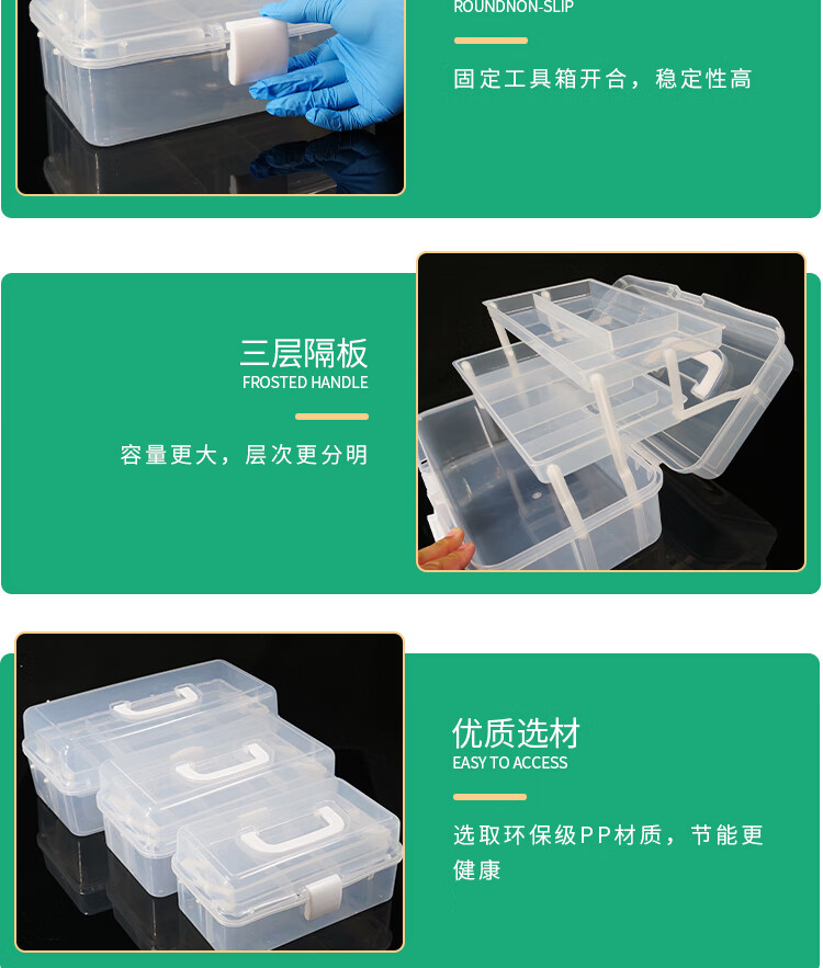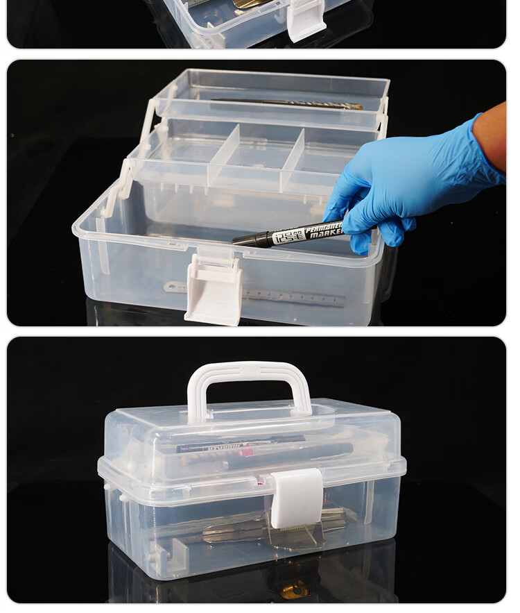 海斯迪克 手提三层多功能收纳盒 gnjz-3234 塑料 27.5*16*13cm 白色 1个