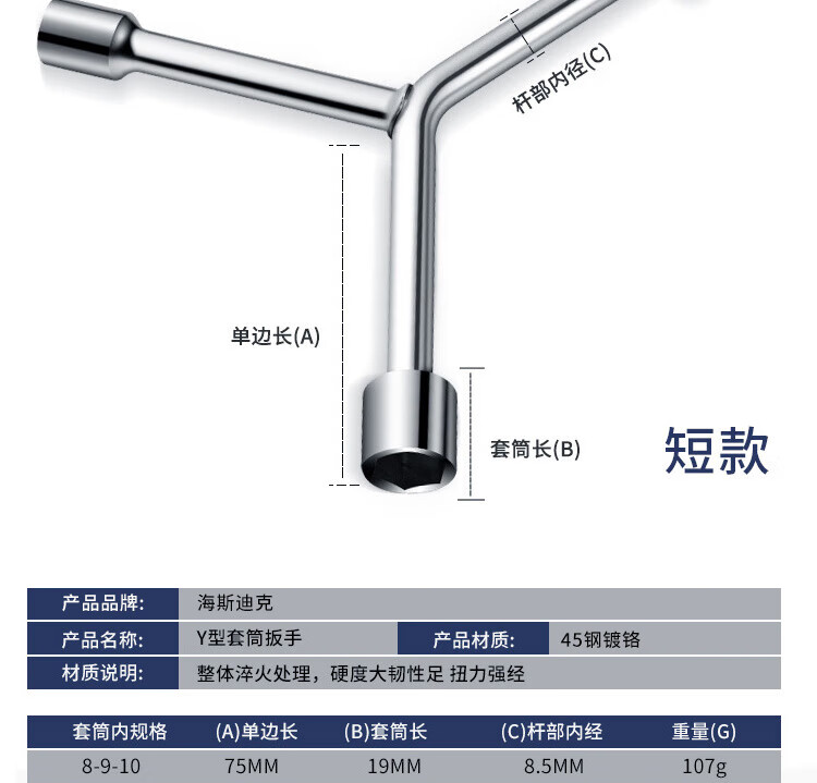 海斯迪克 三叉套筒扳手 gnjz-3063 碳素钢 镀铬 短款10-12-14 1把