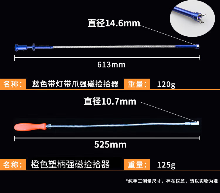 海斯迪克 强磁铁吸棒 gncl-23 蓝色带灯带爪 1个