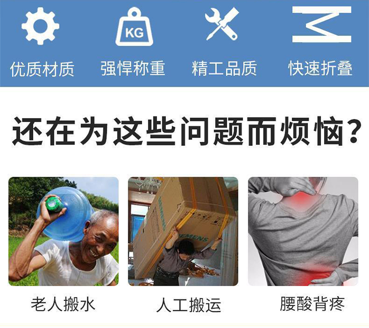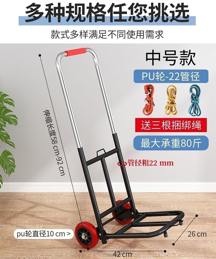 海斯迪克 折叠小拉车搬运拖车 gnjz-3054 中号加强橡胶轮25管径 1个