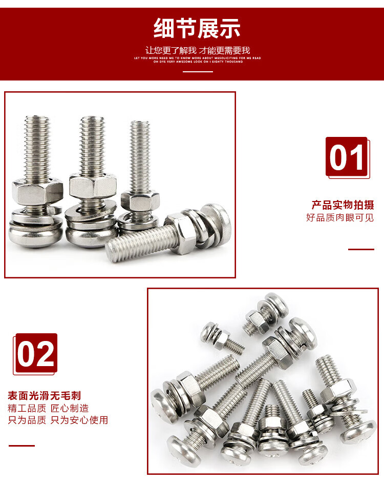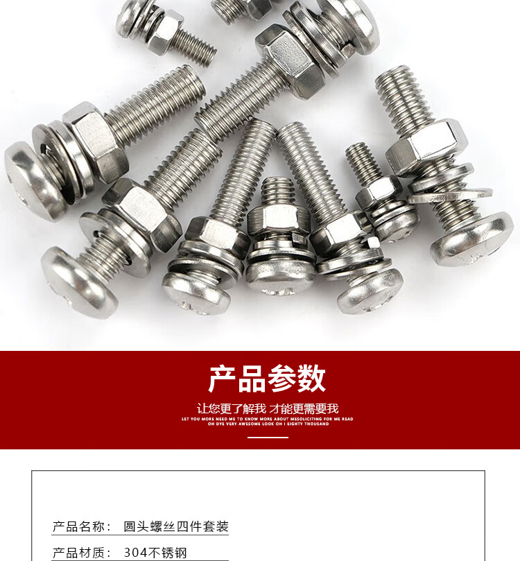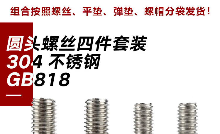海斯迪克 圆头螺丝4件套 gnxy-154 304不锈钢 GB818 本色 M6*25 50套 1件