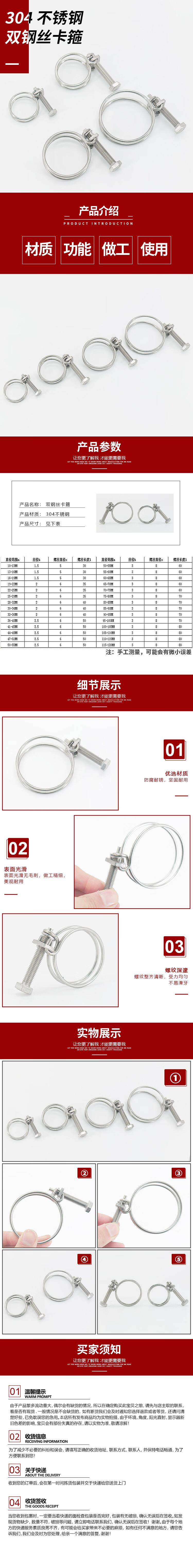 海斯迪克 双钢丝卡箍 gnjz-7449 304不锈钢 本色 28-32*2.0mm 20个 1件