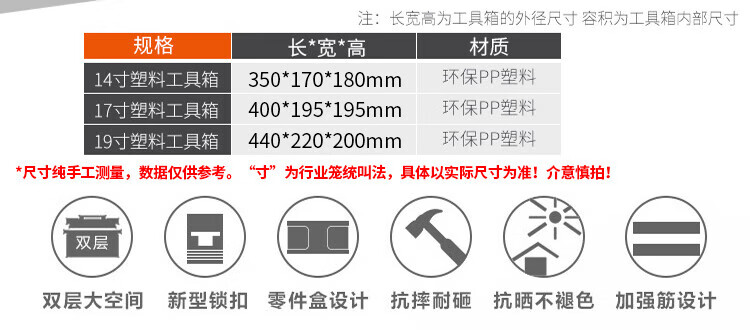 海斯迪克 手提五金工具箱 gnxy-514 塑料 19寸 44*22*20cm 1个