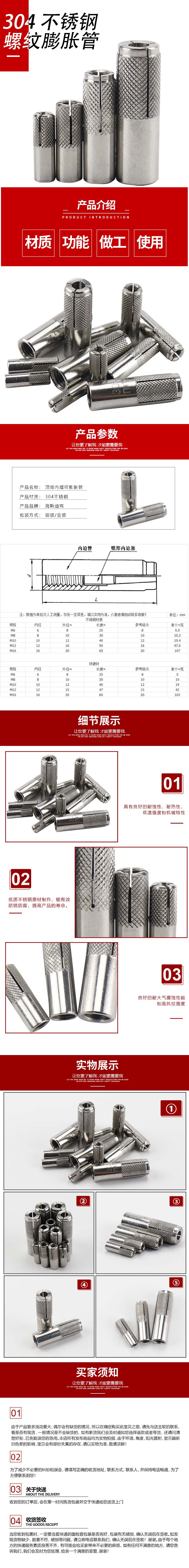 海斯迪克 顶爆内螺纹膨胀管 gnxy-348 304不锈钢 本色 M12 12个 1件