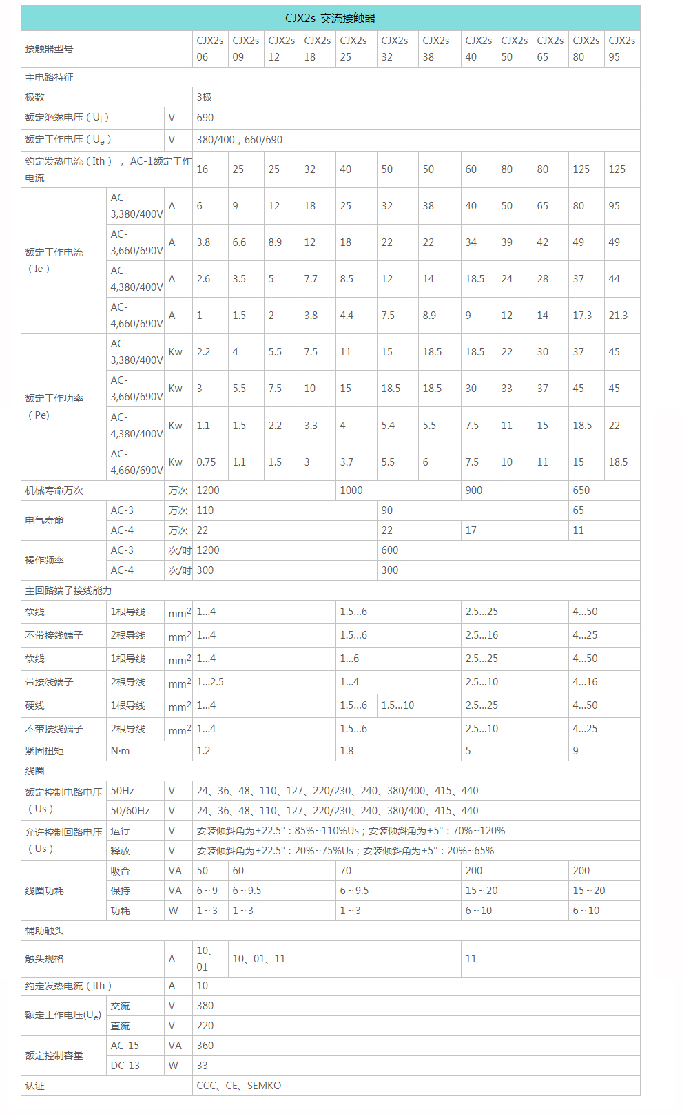 CJX2s-3211 380V/400V 50/60Hz RoHS 1NO+1NC