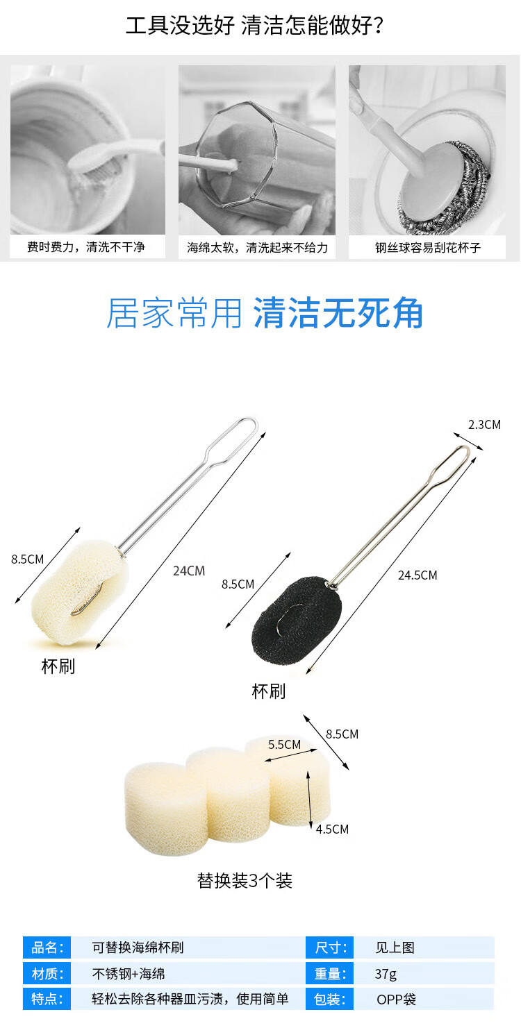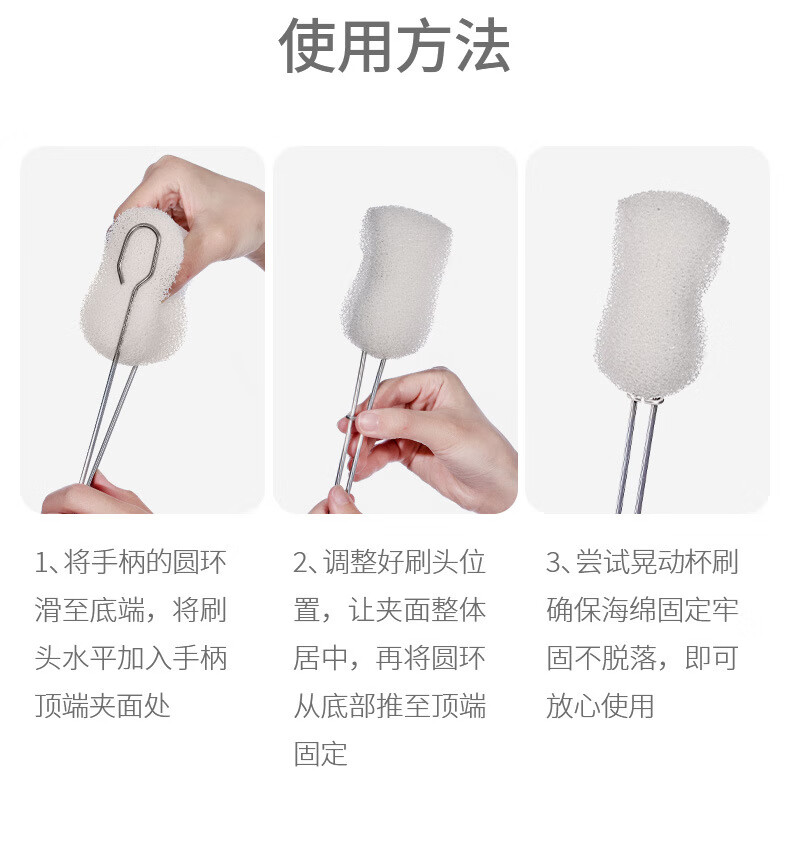 海斯迪克 洗杯刷 gnjz-7489 白色 奶瓶刷+3只刷头 1件