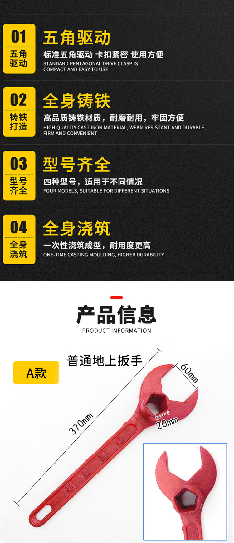 冰禹 消防扳手 BYyn-77 A款红色地上栓扳手 1把