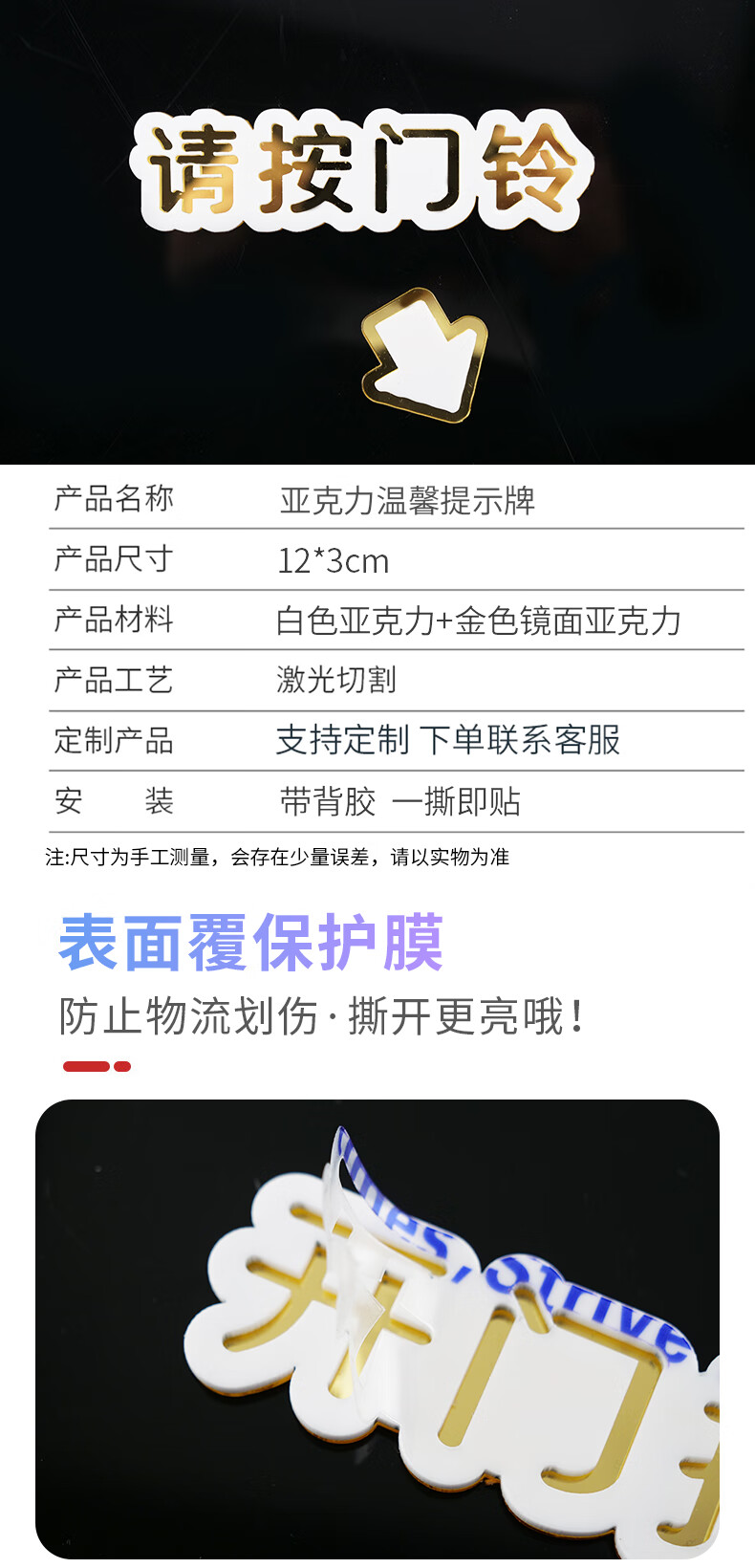 冰禹 门禁开关提示牌 BYyn-425 亚克力 请按门铃 横款 12*3cm 1个