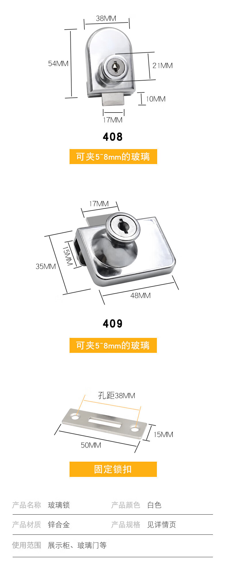 冰禹 玻璃柜锁 BYyn-358 407银色单门锁/通开 1个