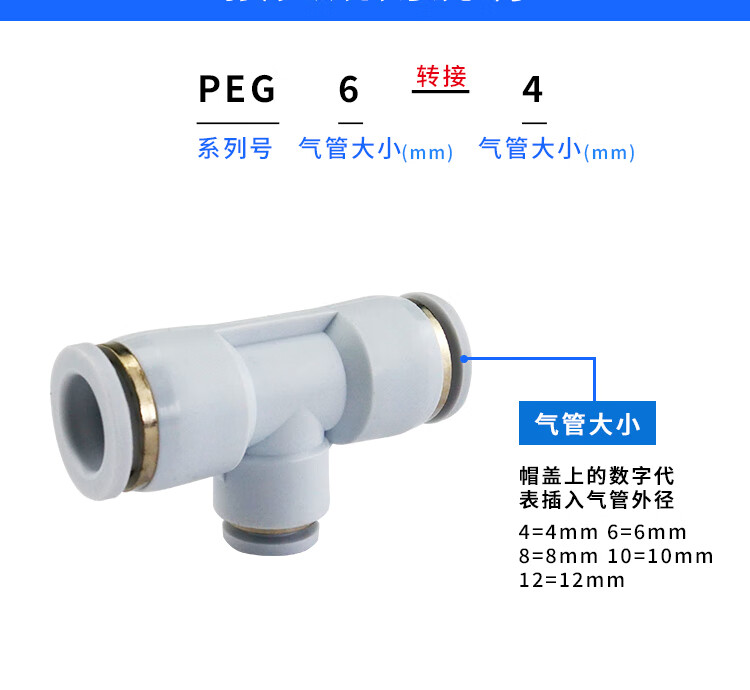 海斯迪克 T型三通变径接头 gny-235 PEG 12-8mm 1个