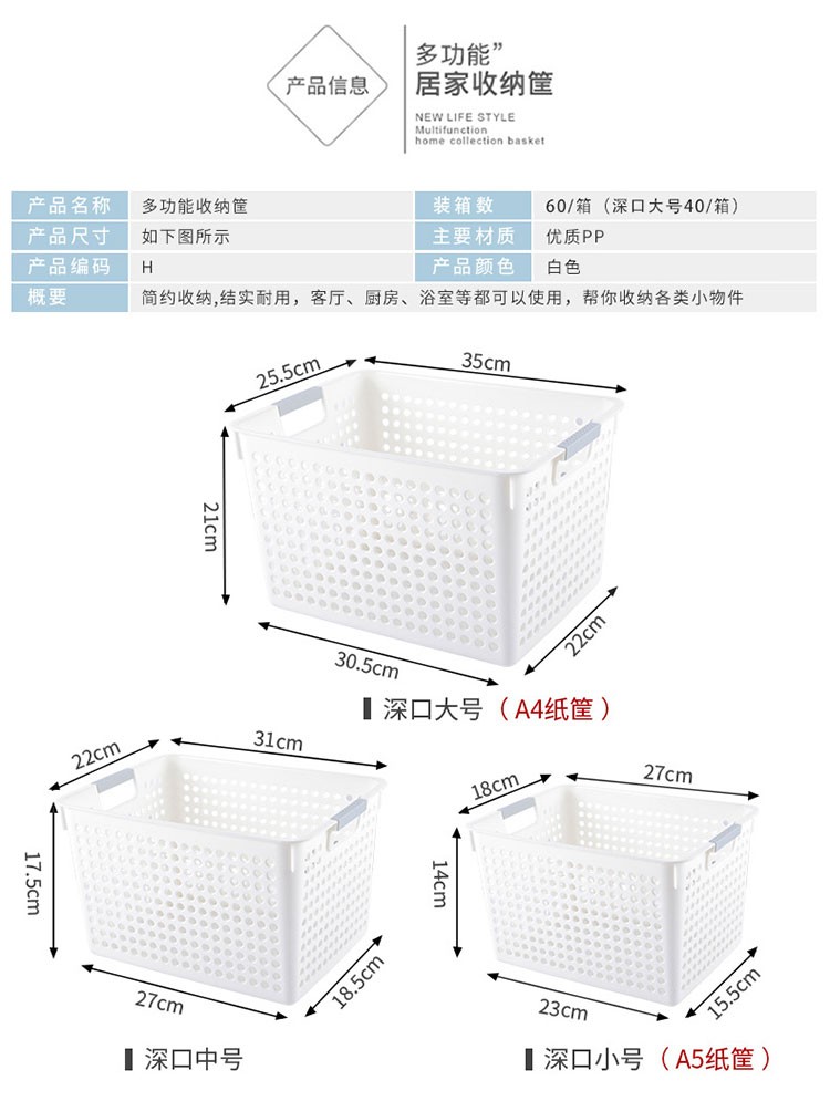 海斯迪克 塑料收纳筐 HDSG-001 白色深口大号 1个