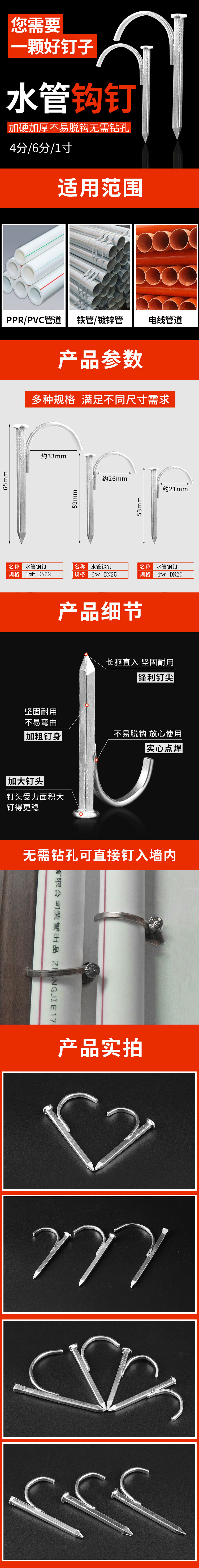 海斯迪克 PPR20水管钩钉 gnjz-7126 200个/件6分管25mm管用 200个 1件