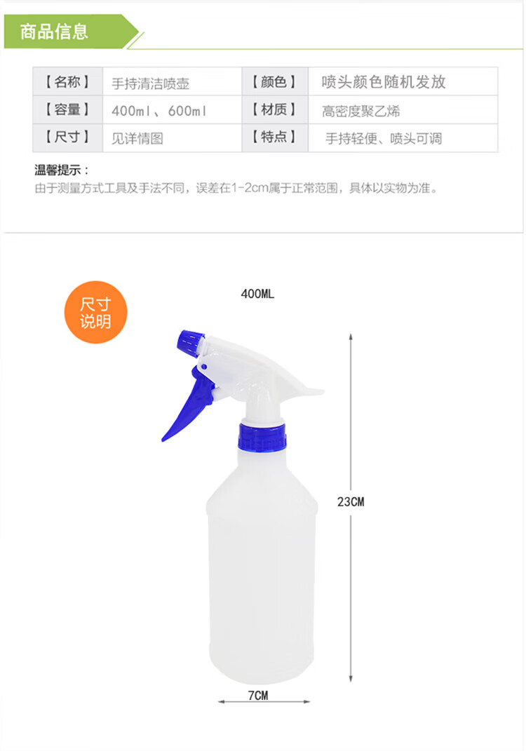 海斯迪克 手动喷雾壶 gnjz-5021 400ml(喷头颜色随机) 1个