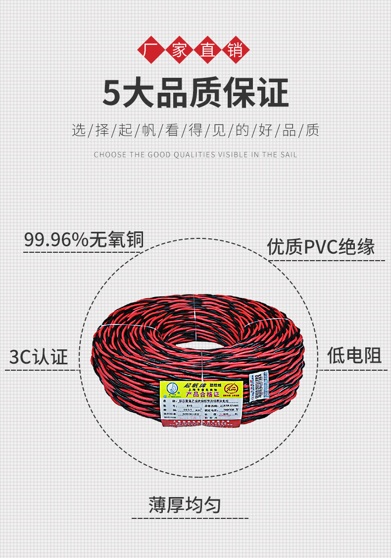 • 商品名称:起帆 铜芯聚氯乙烯绝缘绞型软电线