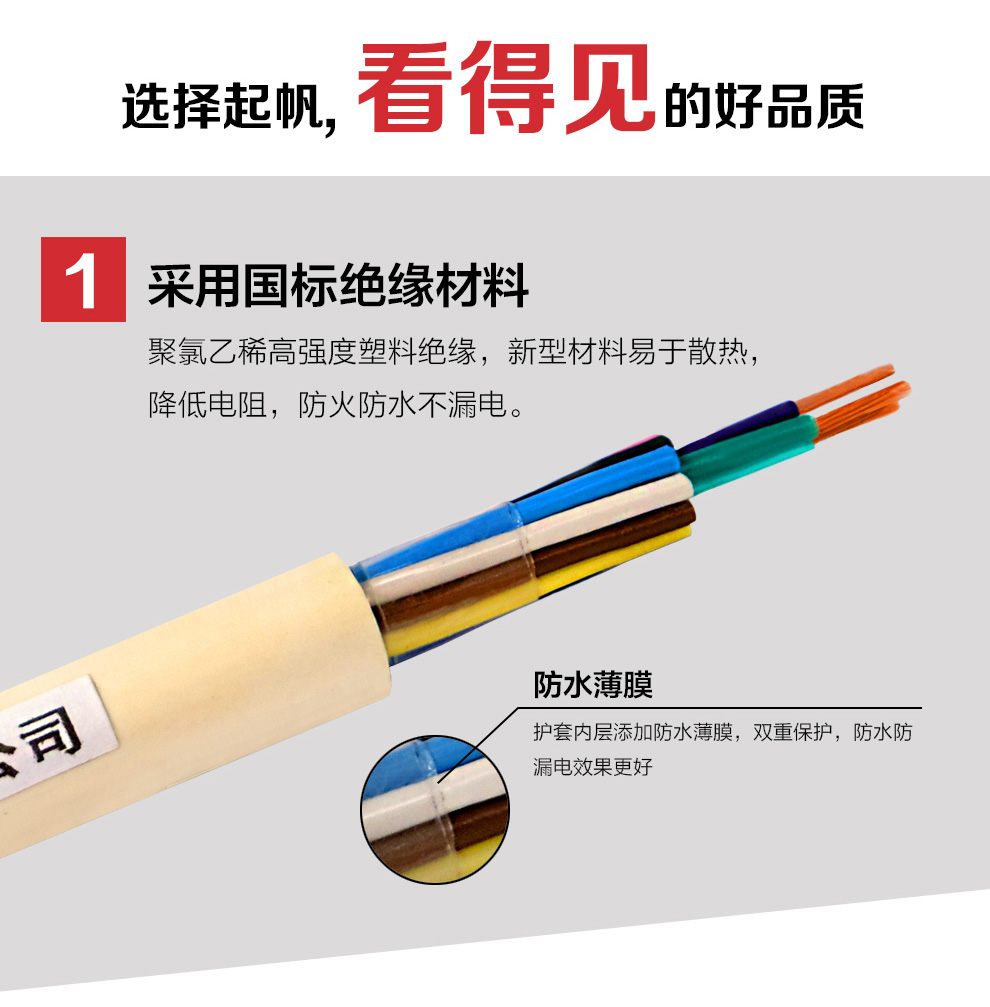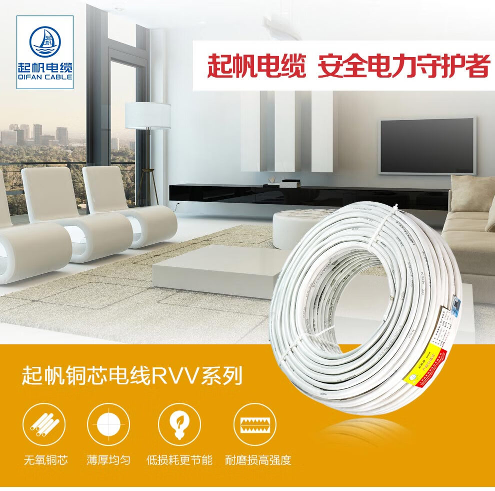 起帆 铜芯聚氯乙烯绝缘聚氯乙烯护套软电线 RVV3*0.5 黑色 100米 1卷