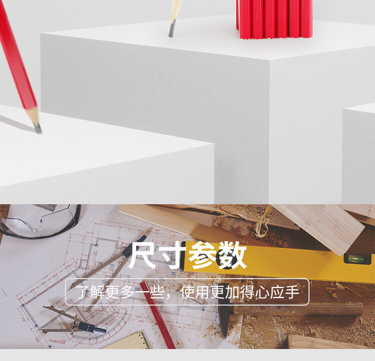 海斯迪克 木工铅笔 gnjz-7453 红漆 20支 1件