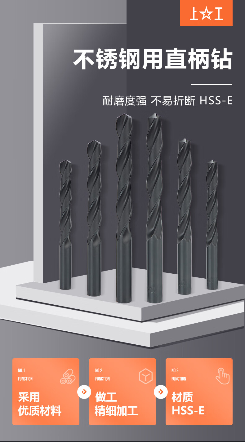 上工 麻花钻头 HSS-E含钴高速钢 直柄 GB/T6135.2 4.5mm 不锈钢专用 10支 1包