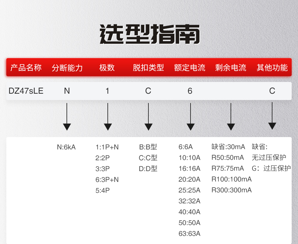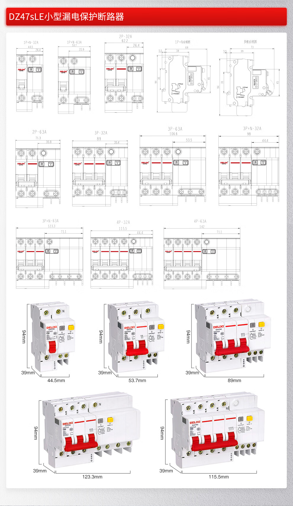 德力西电气 DZ47sLE系列微型漏电保护断路器 DZ47SLEN6C40 C型 40A 3P+N 30mA 1个