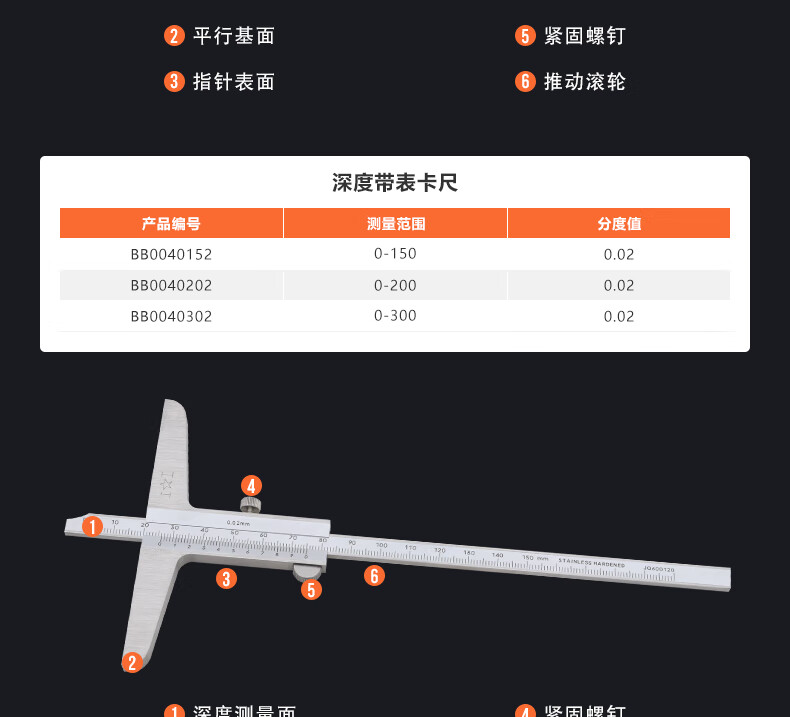 上工 不锈钢带表深度卡尺 BB0040202 0-200mm 0.02 1把