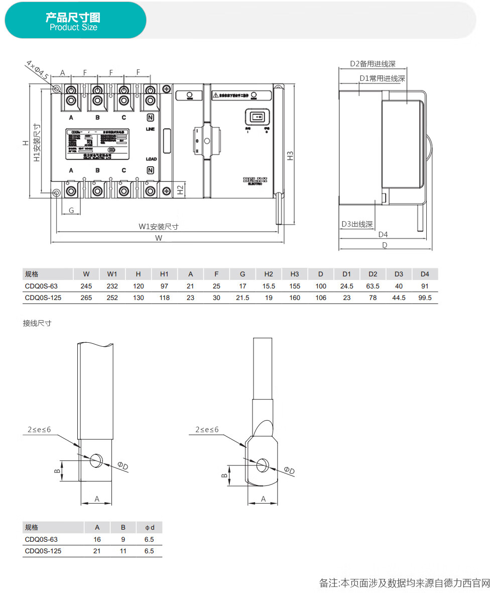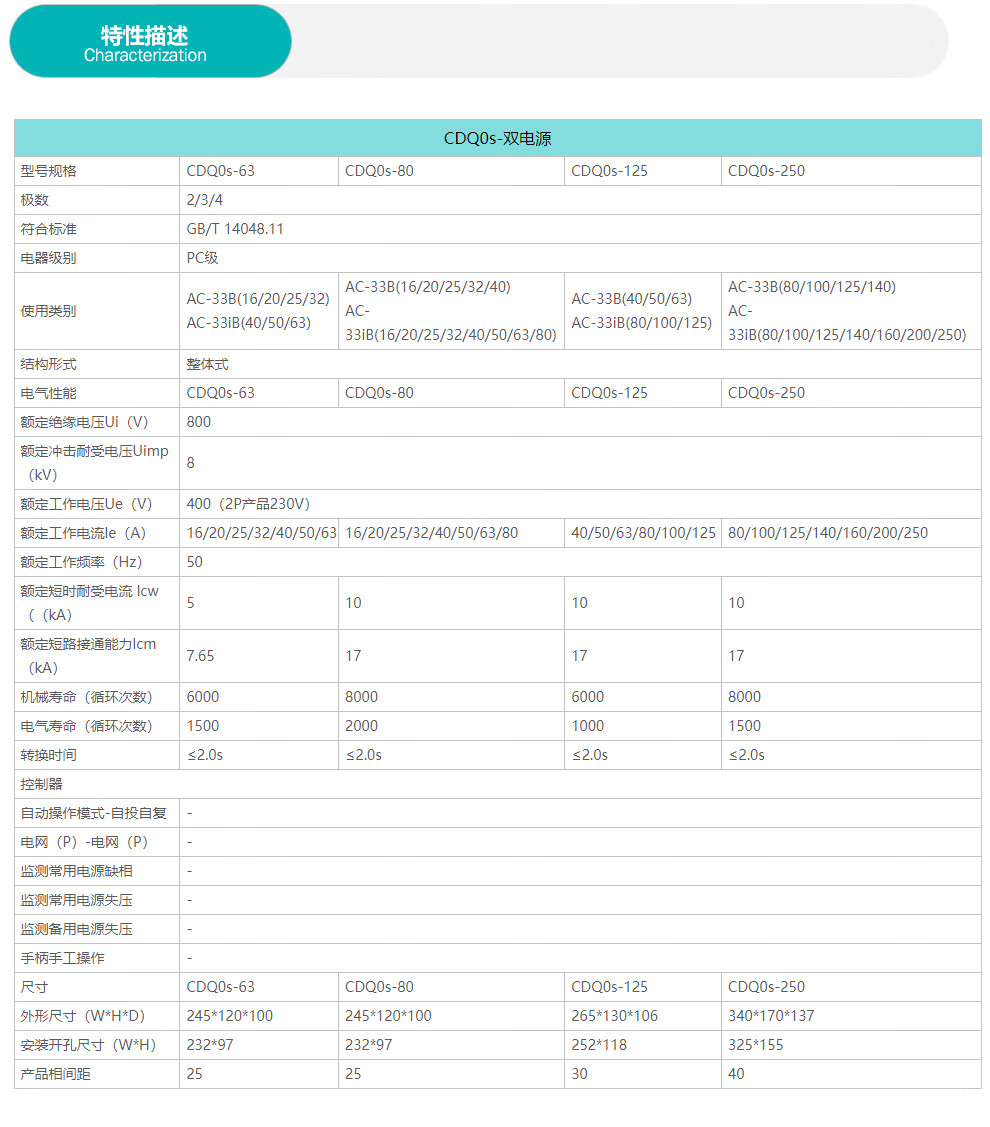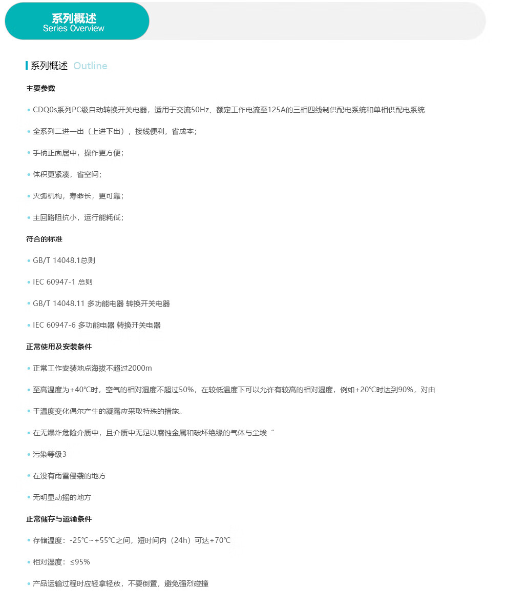 德力西电气 CDQ0S系列PC级双电源自动转换开关 CDQ0S1250804X 基本型 125A 4P 1个