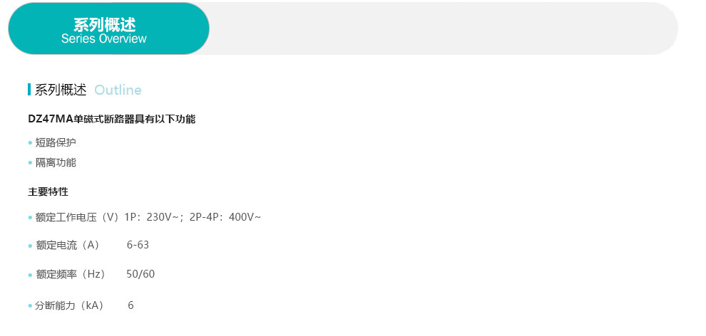 • 商品名称:德力西电气 DZ47MA系列单磁式断路器