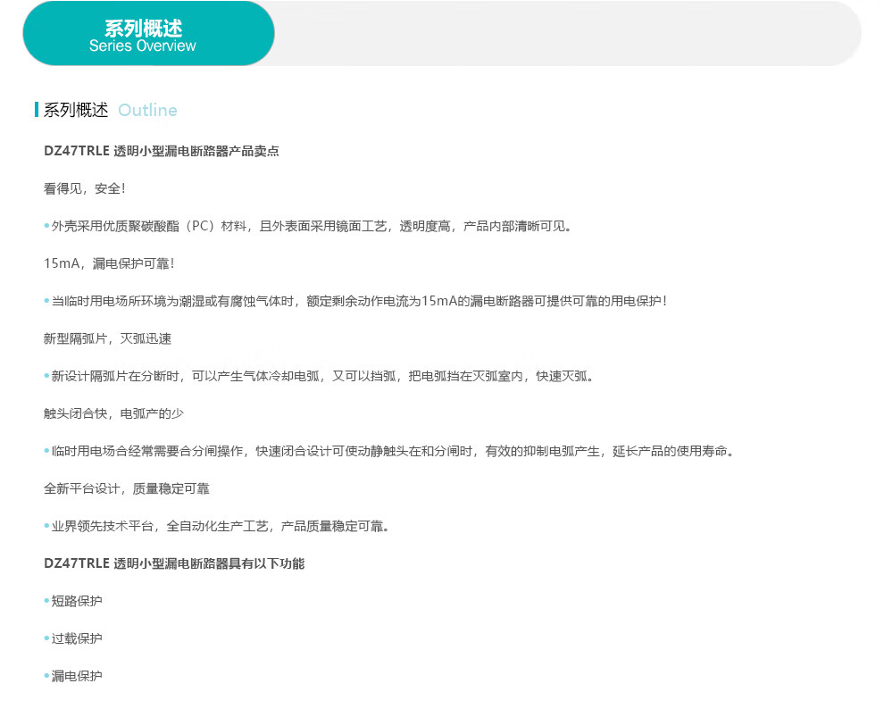 德力西电气 DZ47TRLE系列透明小型漏电断路器 DZ47TRLEN1C25 C型 30mA 1P+N 25A 1个