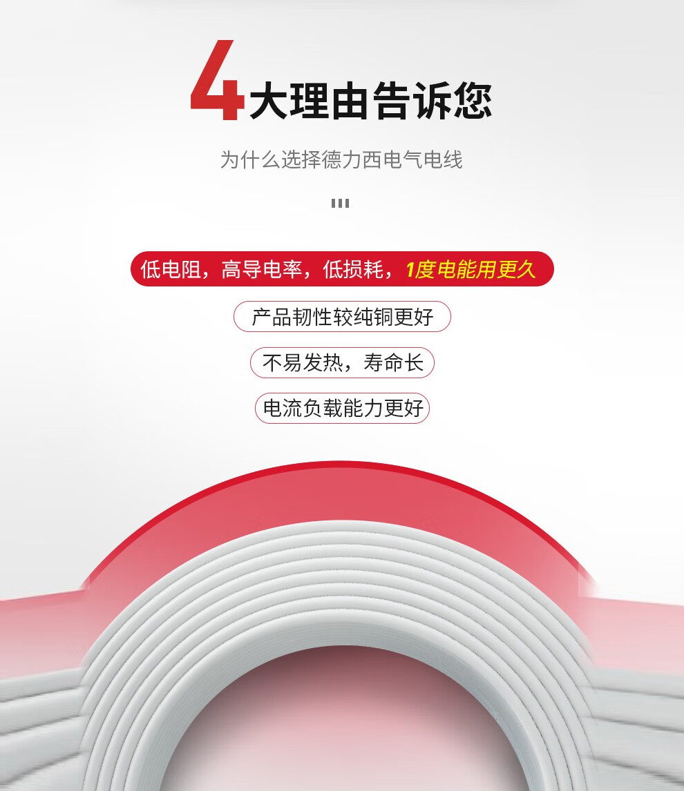德力西电气 RVV 铜芯护套软线 DL16011B2030 白色 2*4mm² 1卷