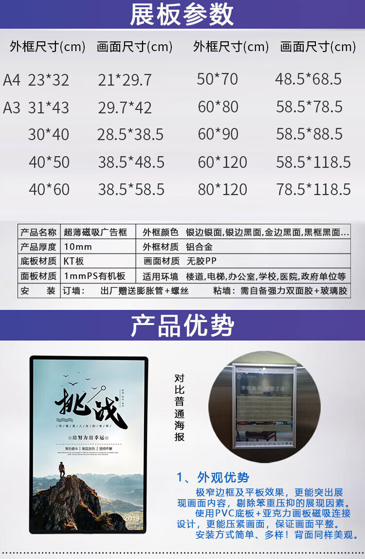 冰禹 磁吸电梯广告框 BJ361 50*70cm 金边银面 1个