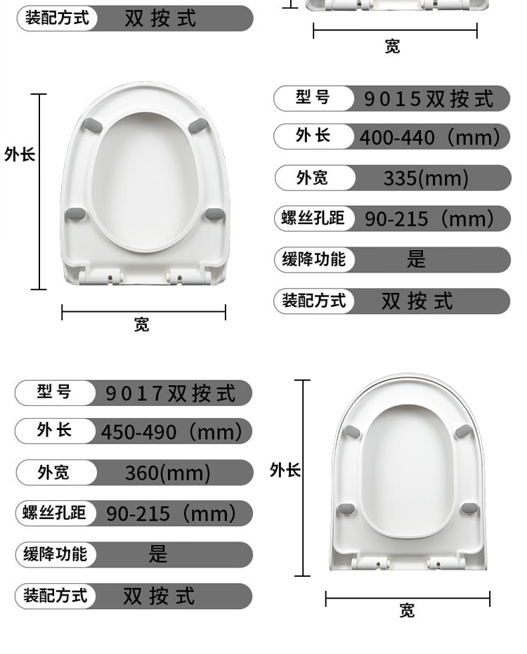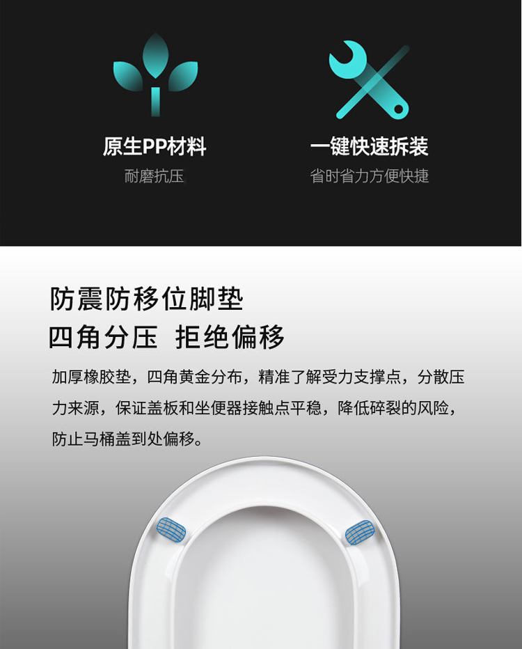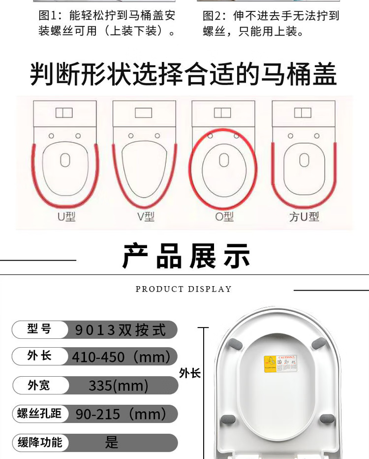 冰禹 坐便器盖 BJ390 9015 双按式上装U型 1个