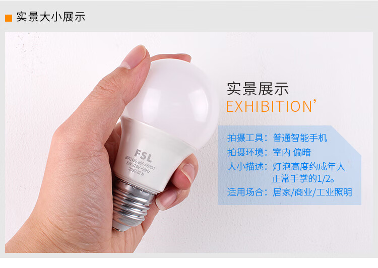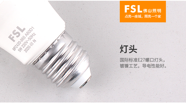 佛山照明 LED节能灯泡 黄光 3000K 7W E27 1个