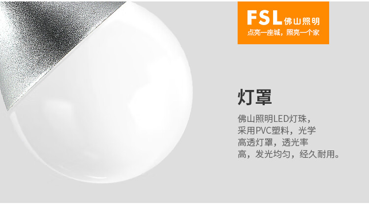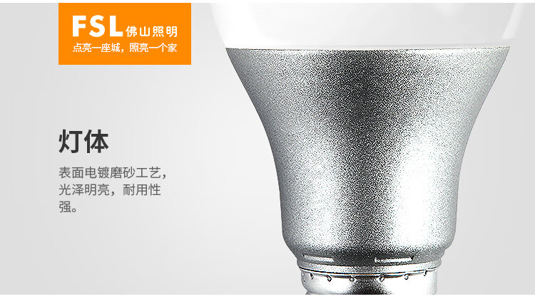 佛山照明 LED节能灯泡 暖白光炫银 3000K 7W E27 1个