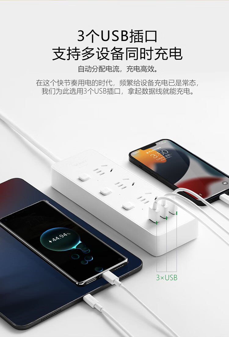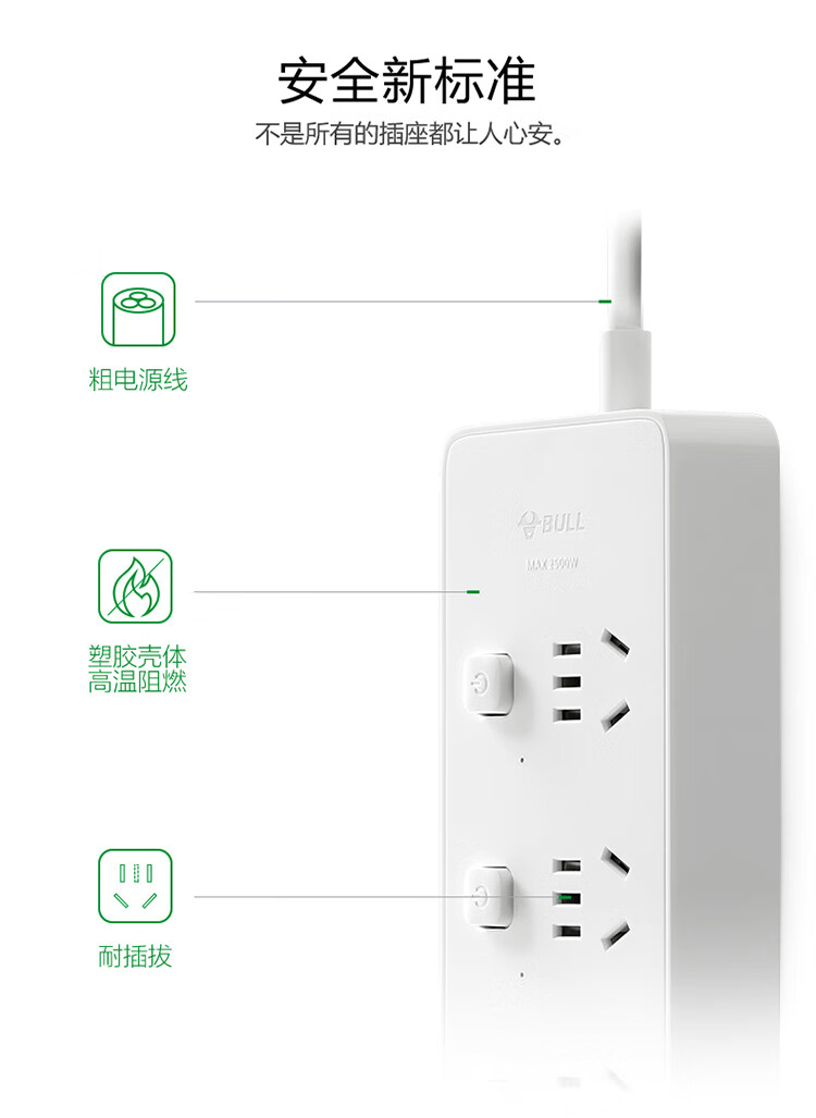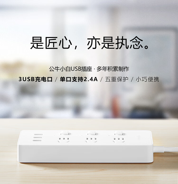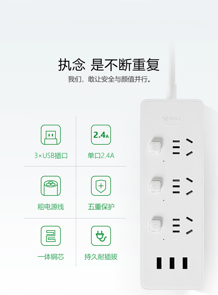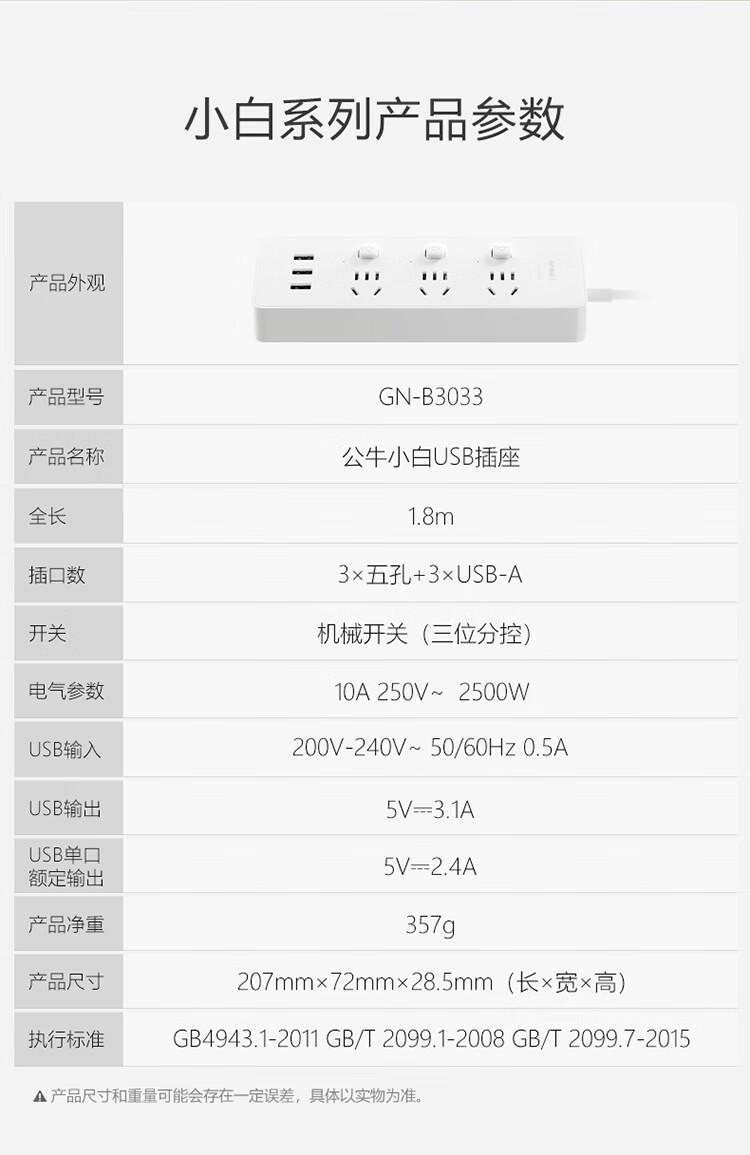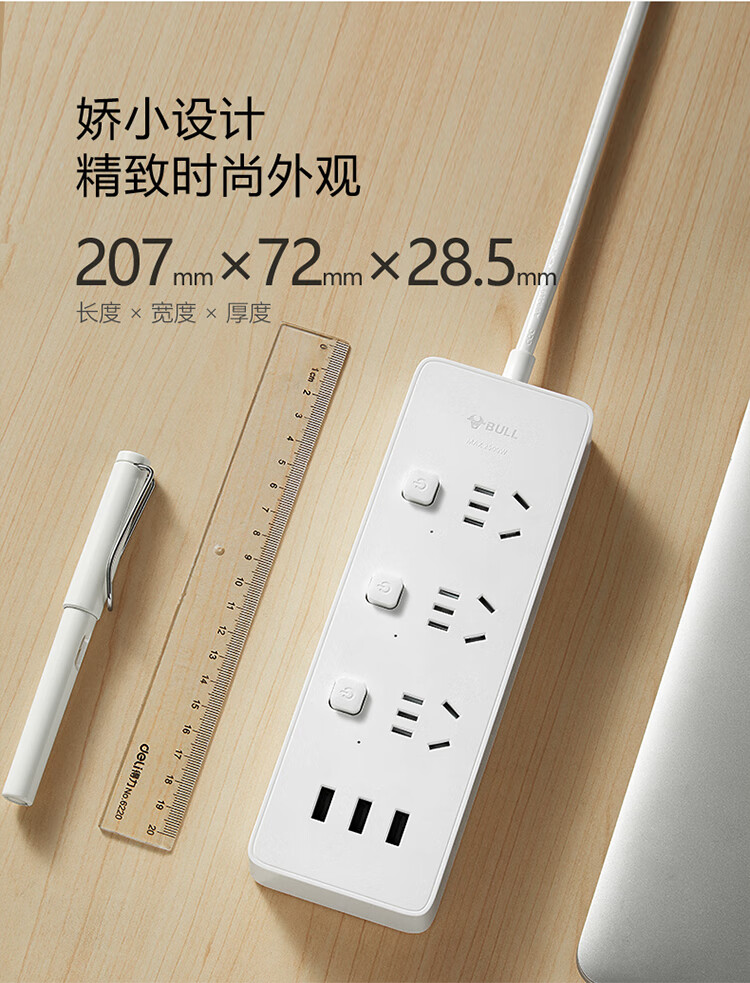 公牛 插线板 GN-B3033 3插孔+3USB口分控插座 1个