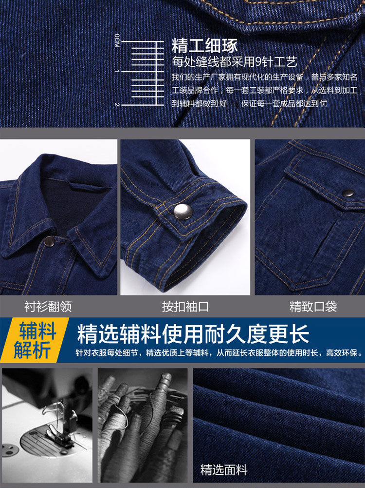 劳博士 牛仔工作服长袖 LBS-041 深蓝色 M 1件