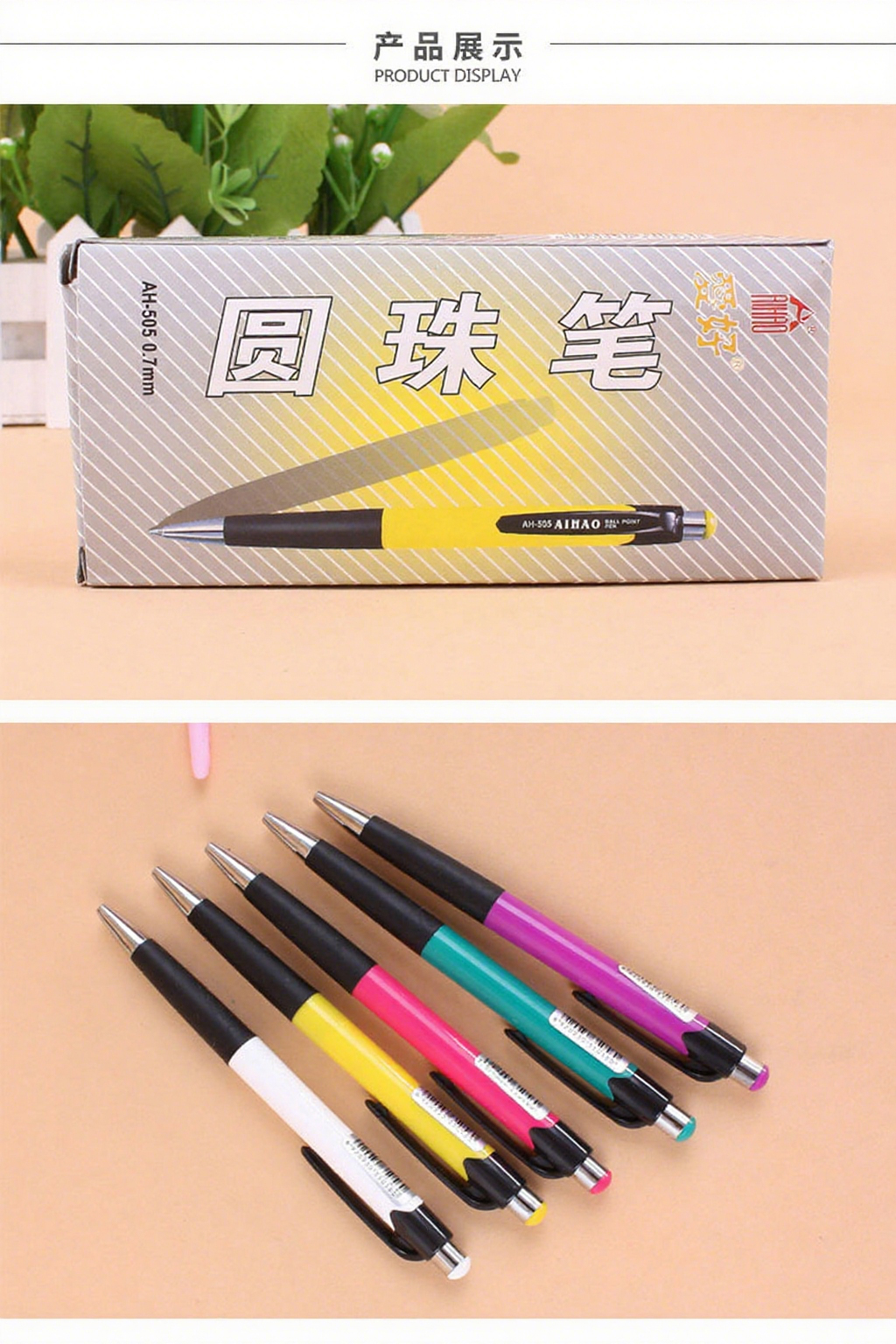 爱好 按动圆珠笔 AH-505 0.7mm 蓝色 笔杆颜色随机 1支