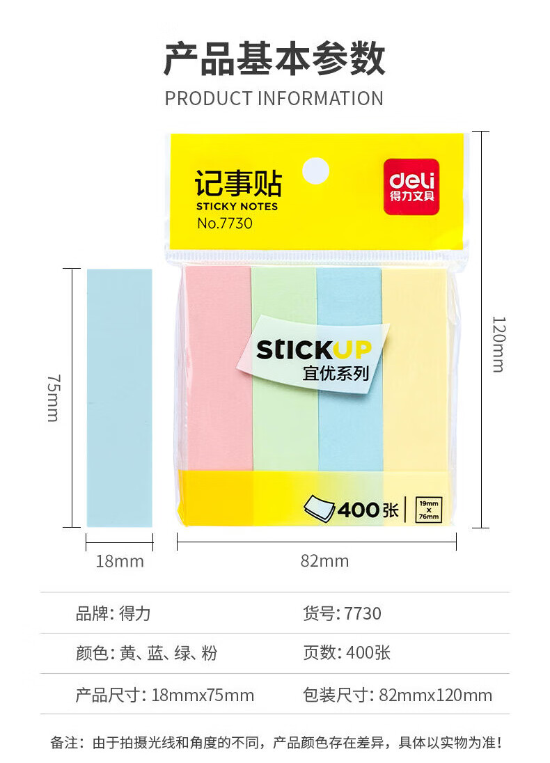得力 彩条记事贴 7730 四色 76×19mm 400张 1包