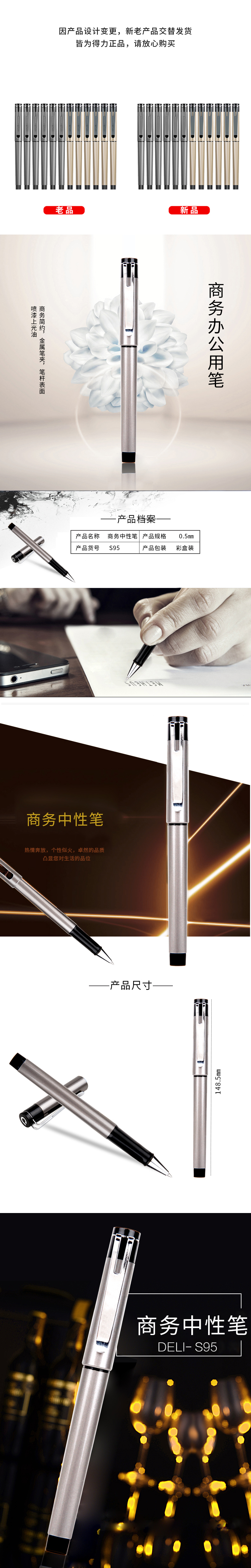 得力 子弹头中性笔 S95 黑色 0.5mm 1支